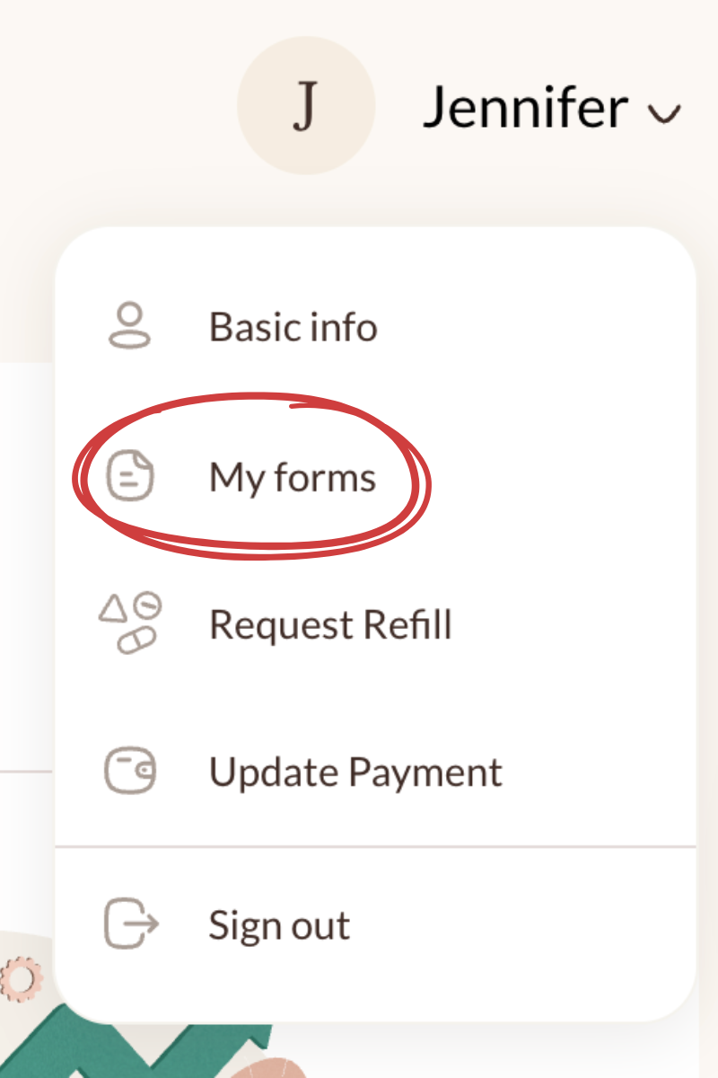 Note: While you can complete forms in the mobile app (tap on your Profile icon, then tap Forms from the menu), we recommend using a desktop or tablet for a more accessible experience.