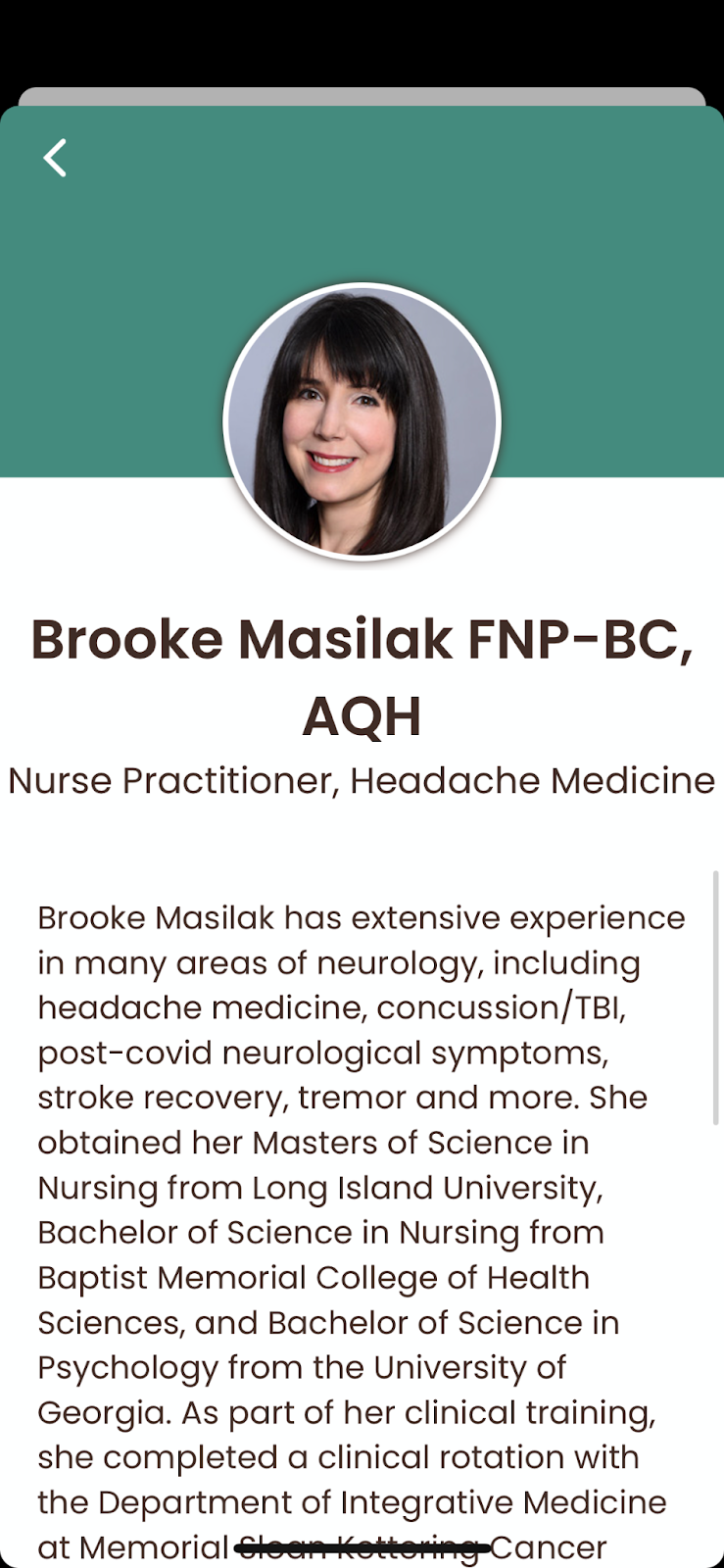 Browse available providers and tap the one you'd like to book with. You can view each provider's profile, which includes their biography, background details, and even a Q&A video of each one. This helps you find the right fit for your care.