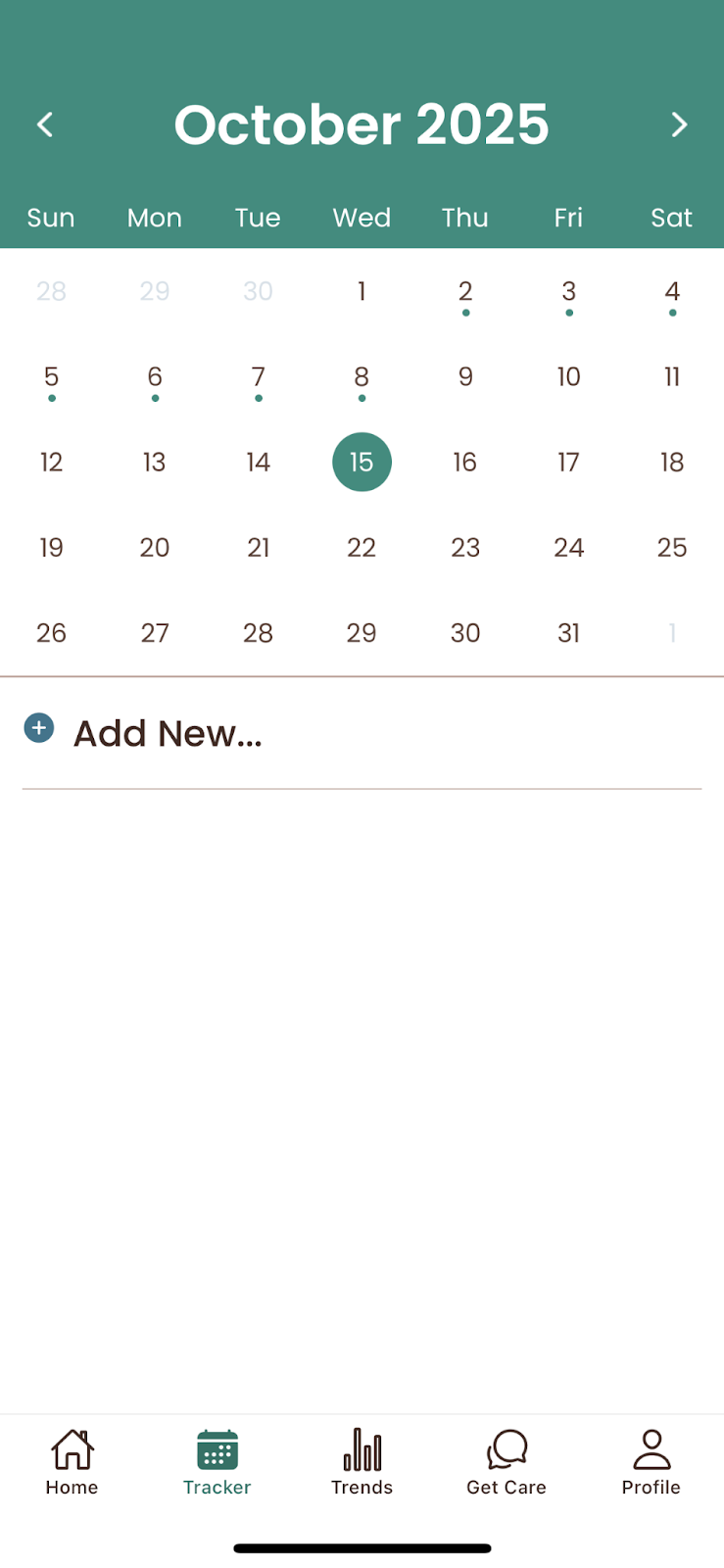 Tap the tracker tab to find the symptom tracker. Here, you can record your headache days, migraine attacks, and other symptoms as they occur.